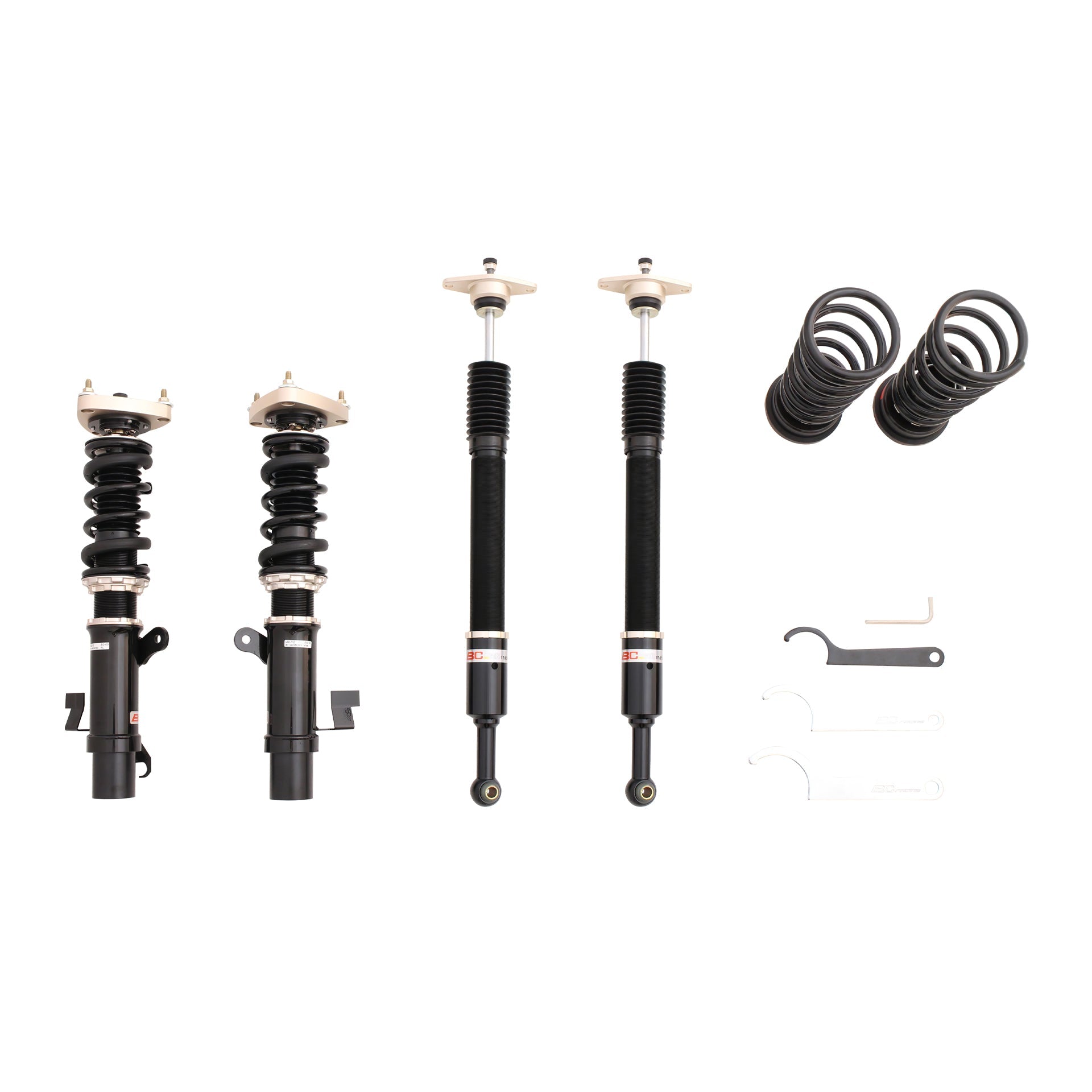 The BC Racing BR Series offers the most affordable entry into coilover suspension without sacrificing performance, comfort, build quality, vehicle height, or handling. This is done by extensively testing each vehicle then refining the coilover characteristics as many times as needed to ensure the most well-balanced and affordable aftermarket suspension conceivable. BC Racing takes great pride in choosing spring rates for our off-the-shelf kits that strike the perfect balance between comfort and performance so you're never stuck with an oversprung suspension like many other brands sell. BC Racing offers one of the widest ranges of damping adjustment with 30-clicks of compression/rebound adjusted simultaneously on the BR Series. With meticulously chosen spring rates, damper valving, and one of the widest adjustment ranges in the industry, you can't go wrong with the BC Racing BR Series Coilover System.