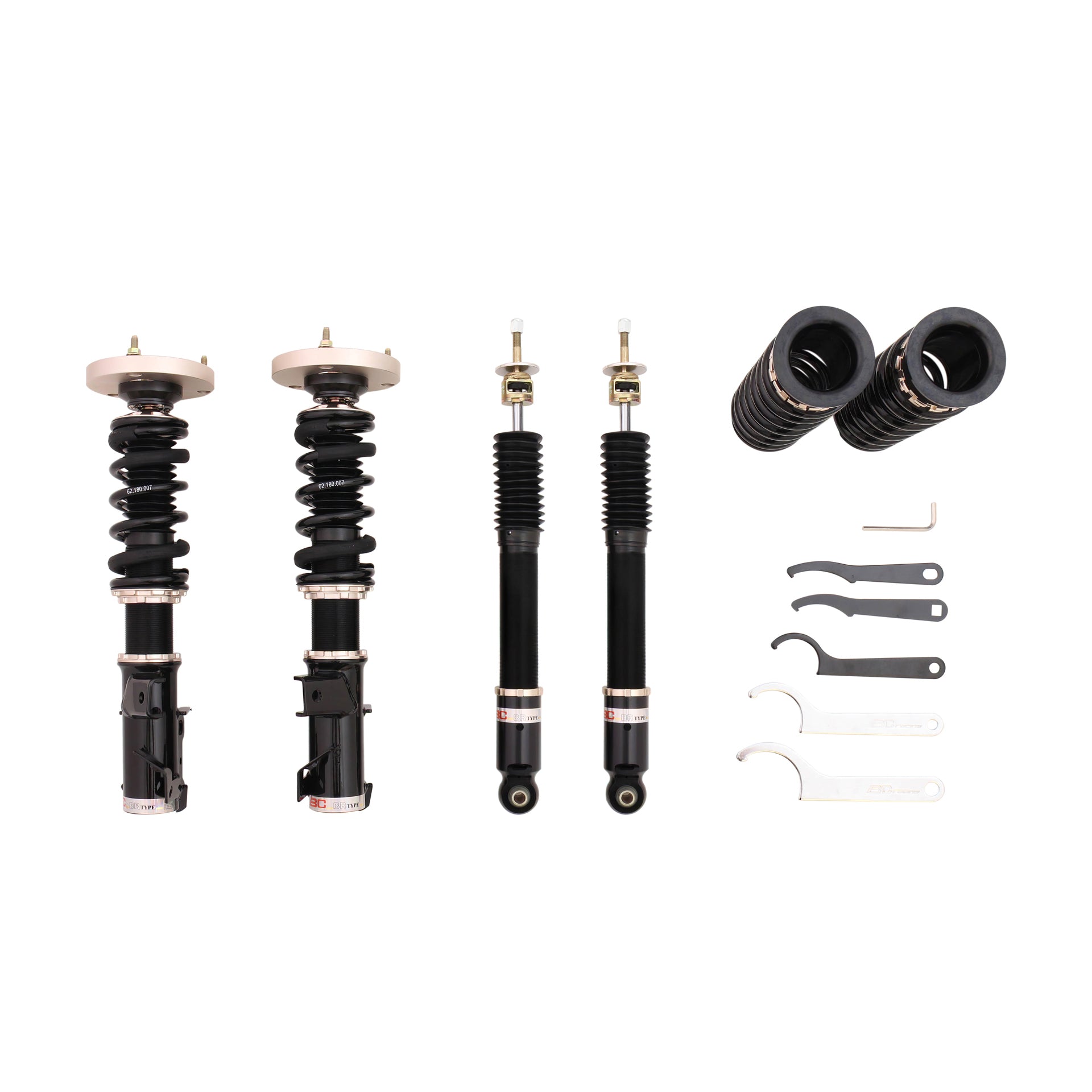 The BC Racing BR Series offers the most affordable entry into coilover suspension without sacrificing performance, comfort, build quality, vehicle height, or handling. This is done by extensively testing each vehicle then refining the coilover characteristics as many times as needed to ensure the most well-balanced and affordable aftermarket suspension conceivable. BC Racing takes great pride in choosing spring rates for our off-the-shelf kits that strike the perfect balance between comfort and performance so you're never stuck with an oversprung suspension like many other brands sell. BC Racing offers one of the widest ranges of damping adjustment with 30-clicks of compression/rebound adjusted simultaneously on the BR Series. With meticulously chosen spring rates, damper valving, and one of the widest adjustment ranges in the industry, you can't go wrong with the BC Racing BR Series Coilover System.