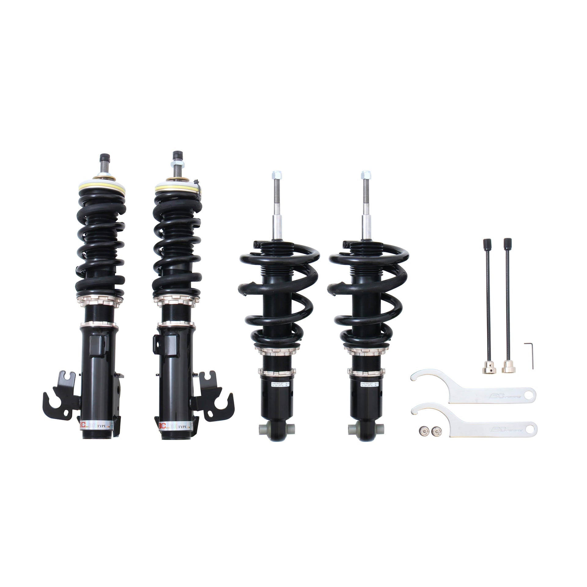 The BC Racing BR Series offers the most affordable entry into coilover suspension without sacrificing performance, comfort, build quality, vehicle height, or handling. This is done by extensively testing each vehicle then refining the coilover characteristics as many times as needed to ensure the most well-balanced and affordable aftermarket suspension conceivable. BC Racing takes great pride in choosing spring rates for our off-the-shelf kits that strike the perfect balance between comfort and performance so you're never stuck with an oversprung suspension like many other brands sell. BC Racing offers one of the widest ranges of damping adjustment with 30-clicks of compression/rebound adjusted simultaneously on the BR Series. With meticulously chosen spring rates, damper valving, and one of the widest adjustment ranges in the industry, you can't go wrong with the BC Racing BR Series Coilover System.