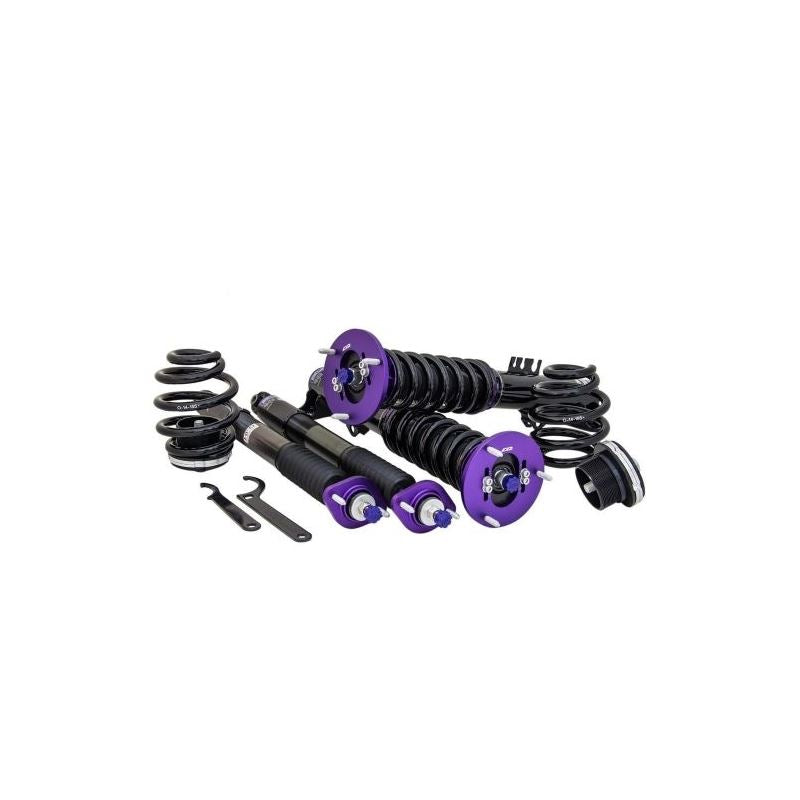 The RS Series Coilover, D2 Racing's flagship coilover has been an affordable mid-level favorite since being originally introduced over 20 years ago. Featuring a 36-way damping adjustable monotube design, RS Series coilovers are perfect for the modified street car that also sees occasional track days. This coilover has separate height and preload adjustments allowing for optimal suspension tuning while always maintaining full strut stroke. For enthusiast seeking a balance between performance and lowered stance, the RS Series Coilover Kit is the ultimate upgrade.